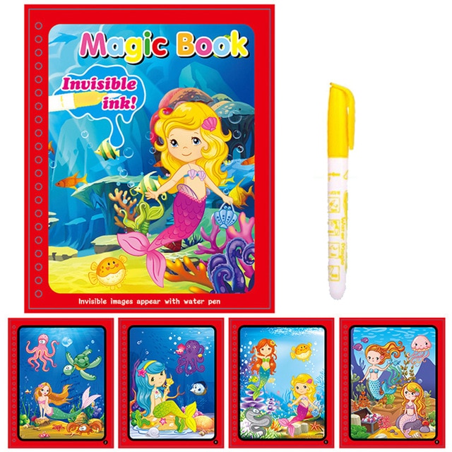 Animal Zoo Princess Magic Water Drawing Book Colorling Mermaid Cartoon Doodle Magic Pen Drawing Board Toys Kids Children Gifts