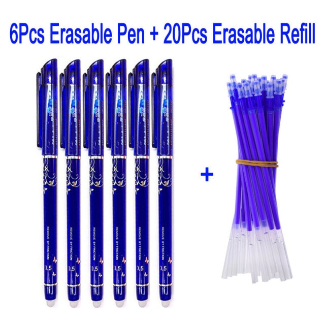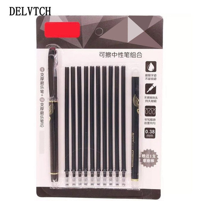 DELVTCH 0.5MM Erasable Suit Gel Pen Blue/Black Ink Magic Erasable Pen Refill and Pen Set For School Student Office Writing Tools